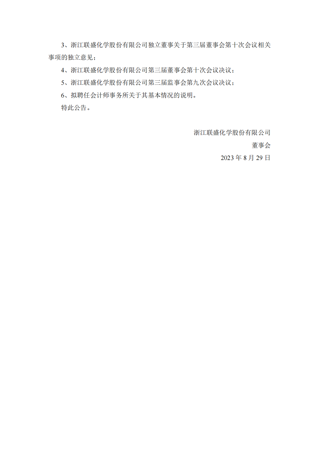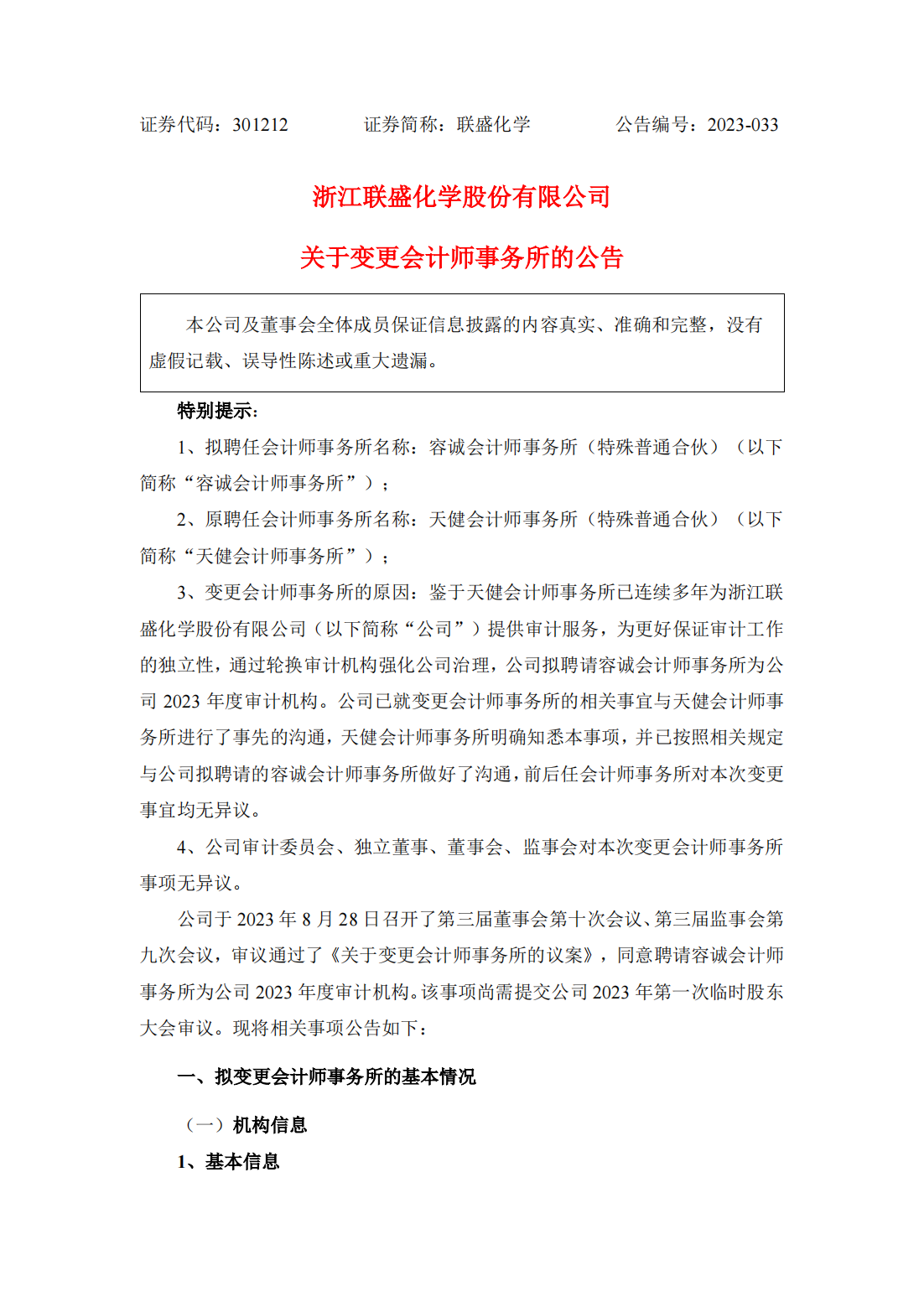 浙江联盛化学股份有限公司 关于变更会计师事务所的公告