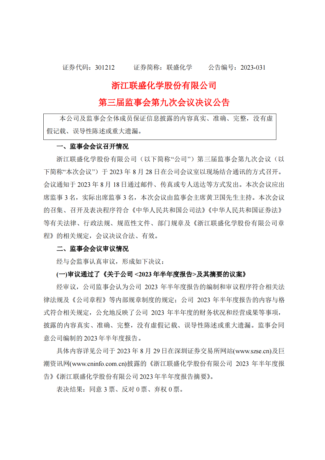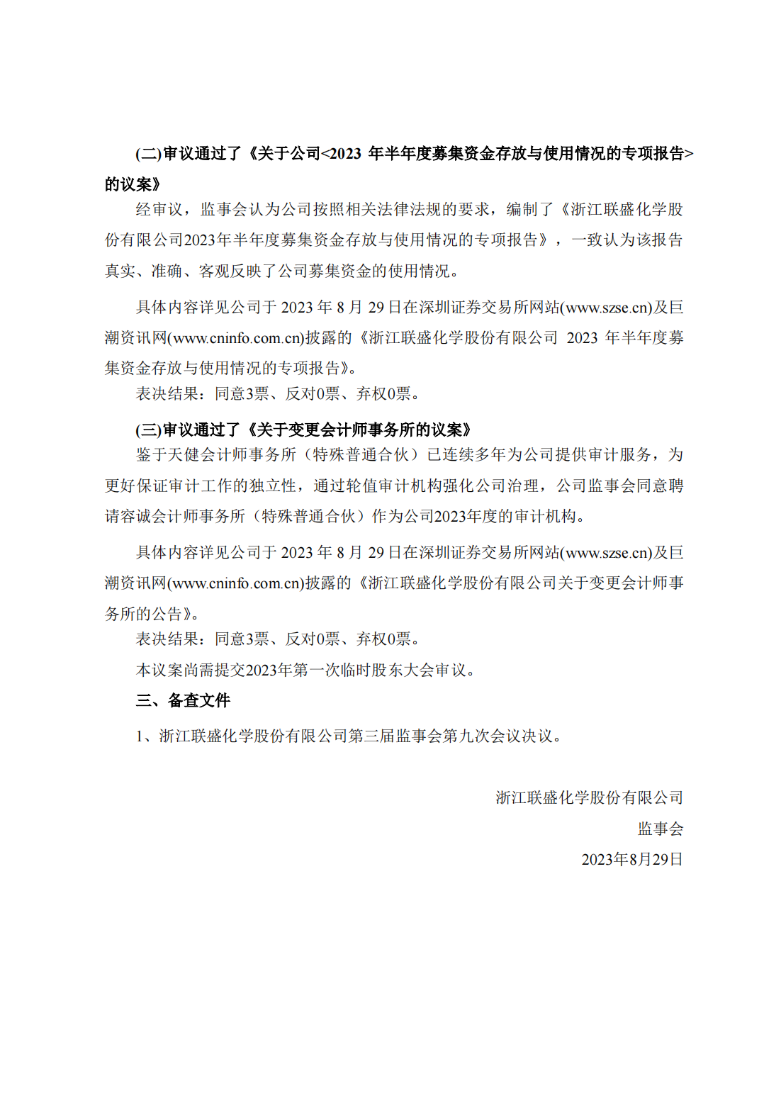 浙江联盛化学股份有限公司 关于召开 2023 年第一次临时股东大会的通知